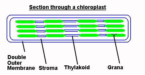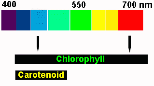 In talking about respiration we followed energy from carbohydrates through different molecules until it was mostly in NADH and then it was converted to ATP through an electron transport chain. In photosynthesis we will follow energy from light as it is converted through another electron transport chain via ATP and NADPH back into chemical energy in carbohydrate. Many of the energy yielding reactions in respiration are irreversible; the pathways cannot simply be run backwards. In photosynthesis the electron transport pathway is an integral part of the light reactions. Light that we see and plants use for photosynthesis is a small part of the spectrum of electromagnetic radiation, from just below 400 nm to just above 700 nm. Our peak sensitivity is in the middle of this range at about 550 nm or in the green part of the spectrum. Coincidentally this is the part of the spectrum which plants do not use or"see". They absorb light in the blue and in the red. The light is absorbed by pigments, chlorophyll which absorbs red and blue light (and appears green) and carotenoids which absorb in the blue (and appear yellow). (The presence of magnesium at the center of the chlorophyll molecule accounts for much of the requirement for this element as a plant nutrient) ![]() Chlorophyll a The pigments are concentrated in the grana that form islands, in the thylakoid membranes inside the chloroplast - where all of the reactions of photosyntheis occur. Like the mitochondrion, the chloroplast is enclosed by a double membrane, contains some of its own DNA and is thought to have originated by capture of a photosynthetic bacterium by an ancestral eukaryotic cell. In respiration we followed H+ and e- down an ATP generating pathway to combine with O and make water. The photons of light absorbed by chlorophyll cause a displacement of 2 electrons to a higher energy level which reduces a cytochrome in an electron transport chain in the thylakoid membrane. Somehow the electrons are replaced by two withdrawn from water which is split into 2 H+ and O. H+ is accumulated on the inside of the thylakoid and as it passes through a membrane ATPase it is used to drive ATP synthesis in the same way that ATP is generated in respiration. The electrons pass down a transport pathway to chlorophyll in another reaction center where they receive a boost of light energy which takes them to a high enough energy level to reduce NADP. |
